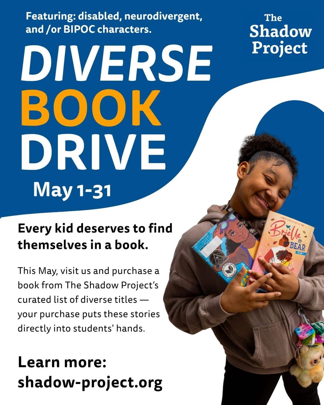 For many kids, reading doesn’t click until they find a character who looks or thinks like them. Our students have disabilities, are neurodivergent, or identify as BIPOC — and those books can be hard to find. The Book Drive is how we help change that — while supporting local bookstores and the authors writing these stories.