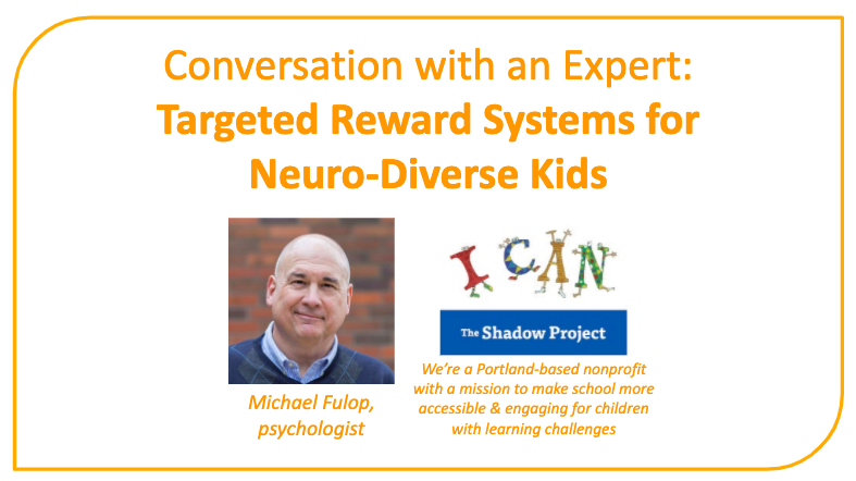 Michael Fulop, Portland-based psychologist, joined us for a practical webinar on the use of structured reward systems to foster self-regulation and lower frustration with schoolwork.